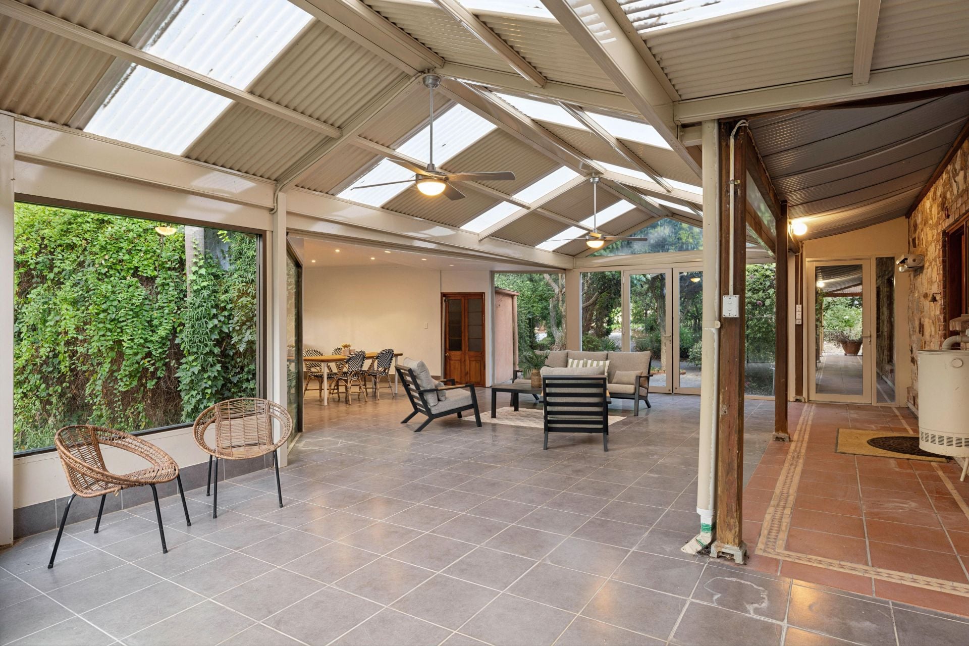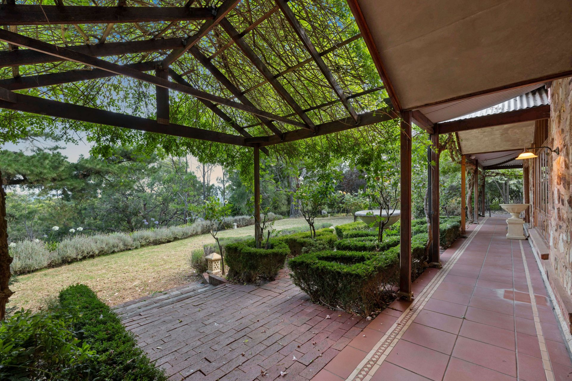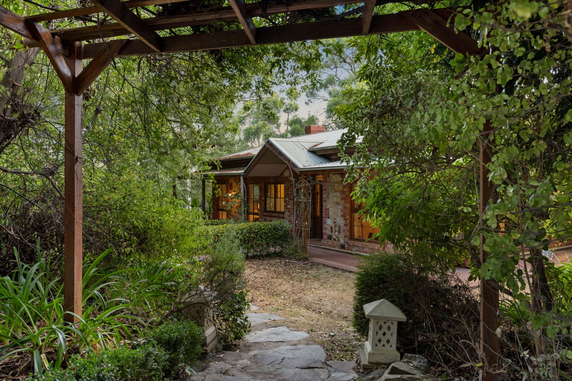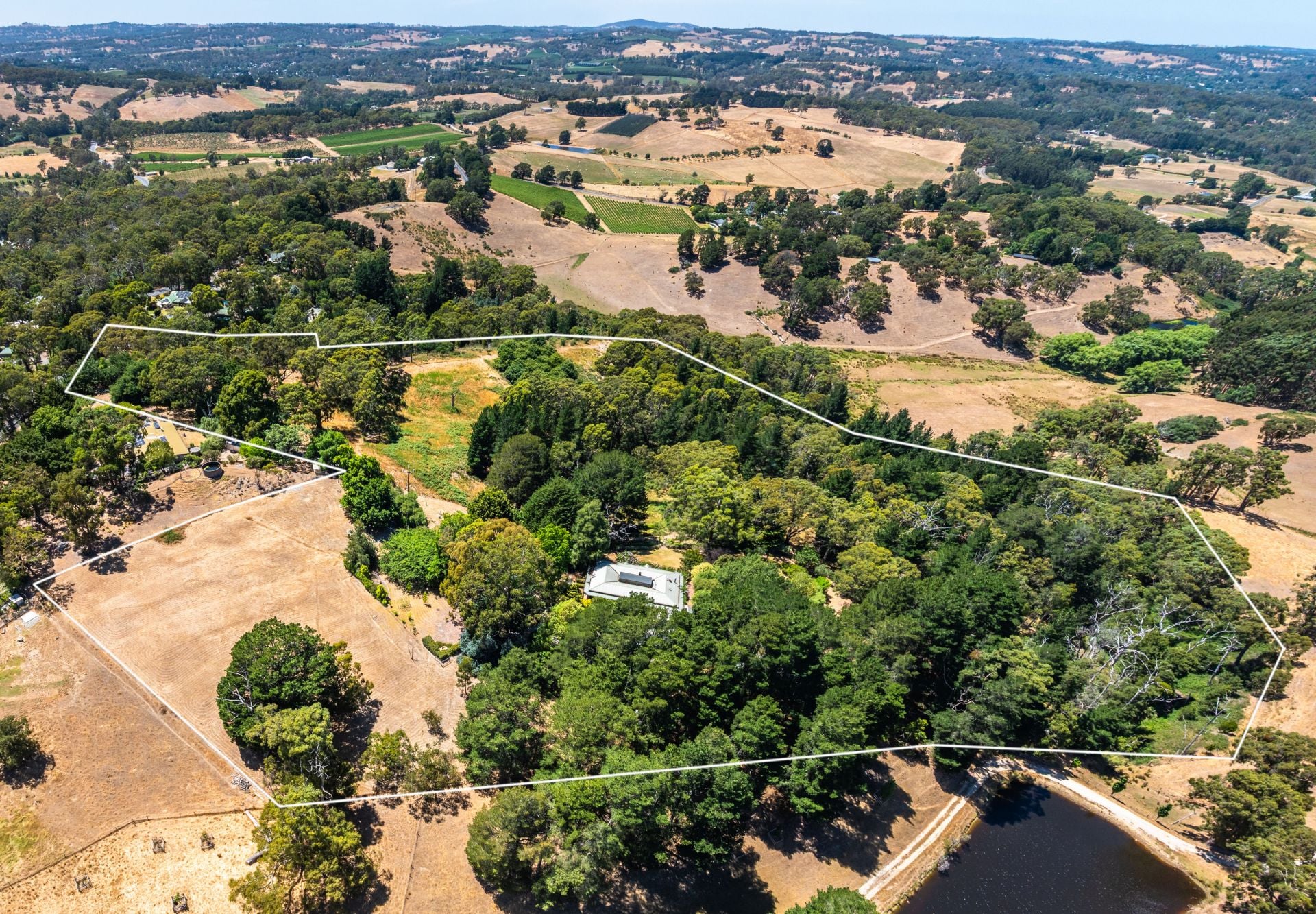 Framed by vine-cloaked return verandahs, the circa 1980 design simply complements its vast Balhannah landholding - dual workshop/shedding and multi-access garaging providing flexibility for vehicles, machinery, or a trade-ready setup.