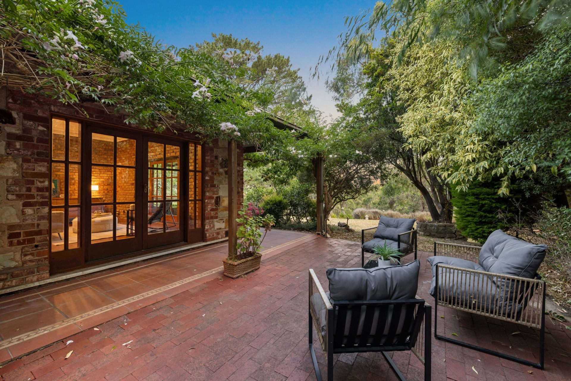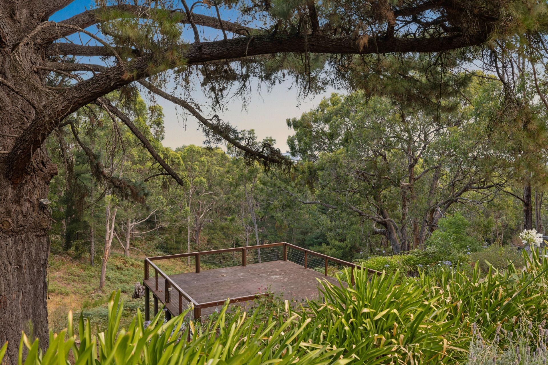 Outdoors, shaded pockets meet quiet garden moments, while the elevated deck lets you stargaze over the calming and undulating terrain; against the home, the mature, structured garden is eager to reflect its former elegance given a gentle rejuvenation.