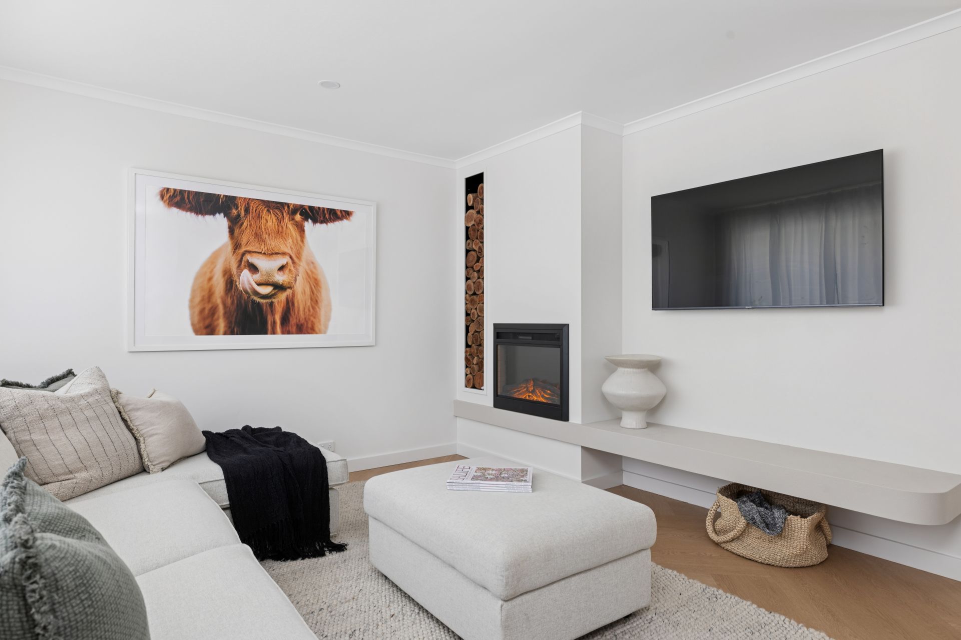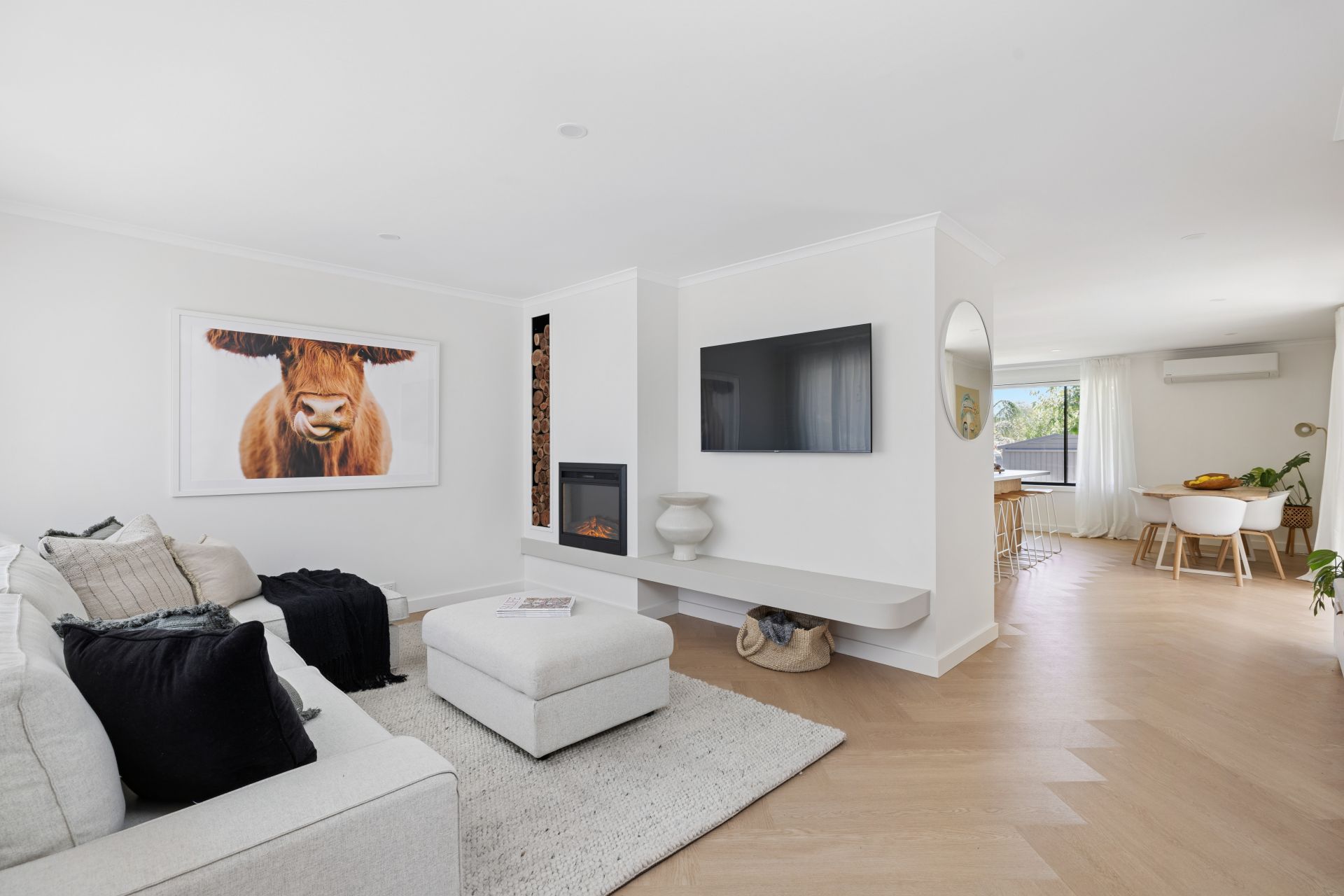 You'll enter for detailed, living room ingenuity and ambience with a feature electric log fire, inbuilt wood store, and luxe herringbone-laid flooring – and you'll stay for the proven practicality of its simple 1980s layout.