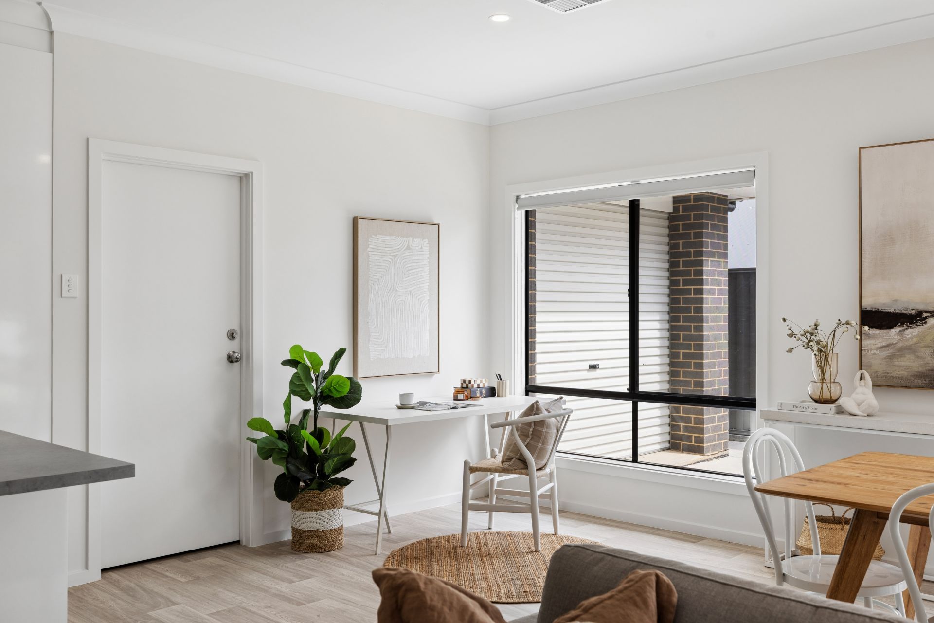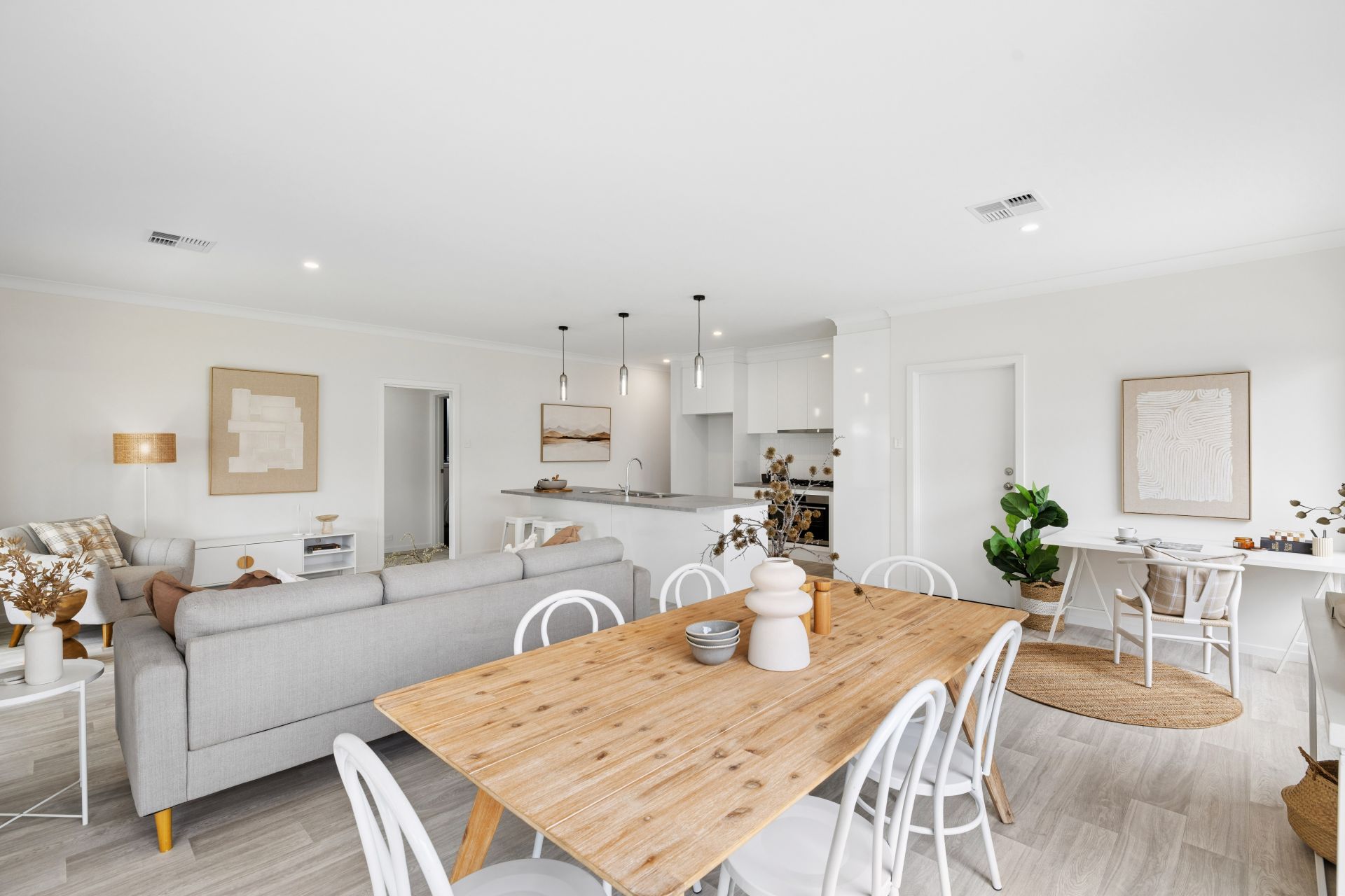 Sunbathed, spacious open plan living + study space